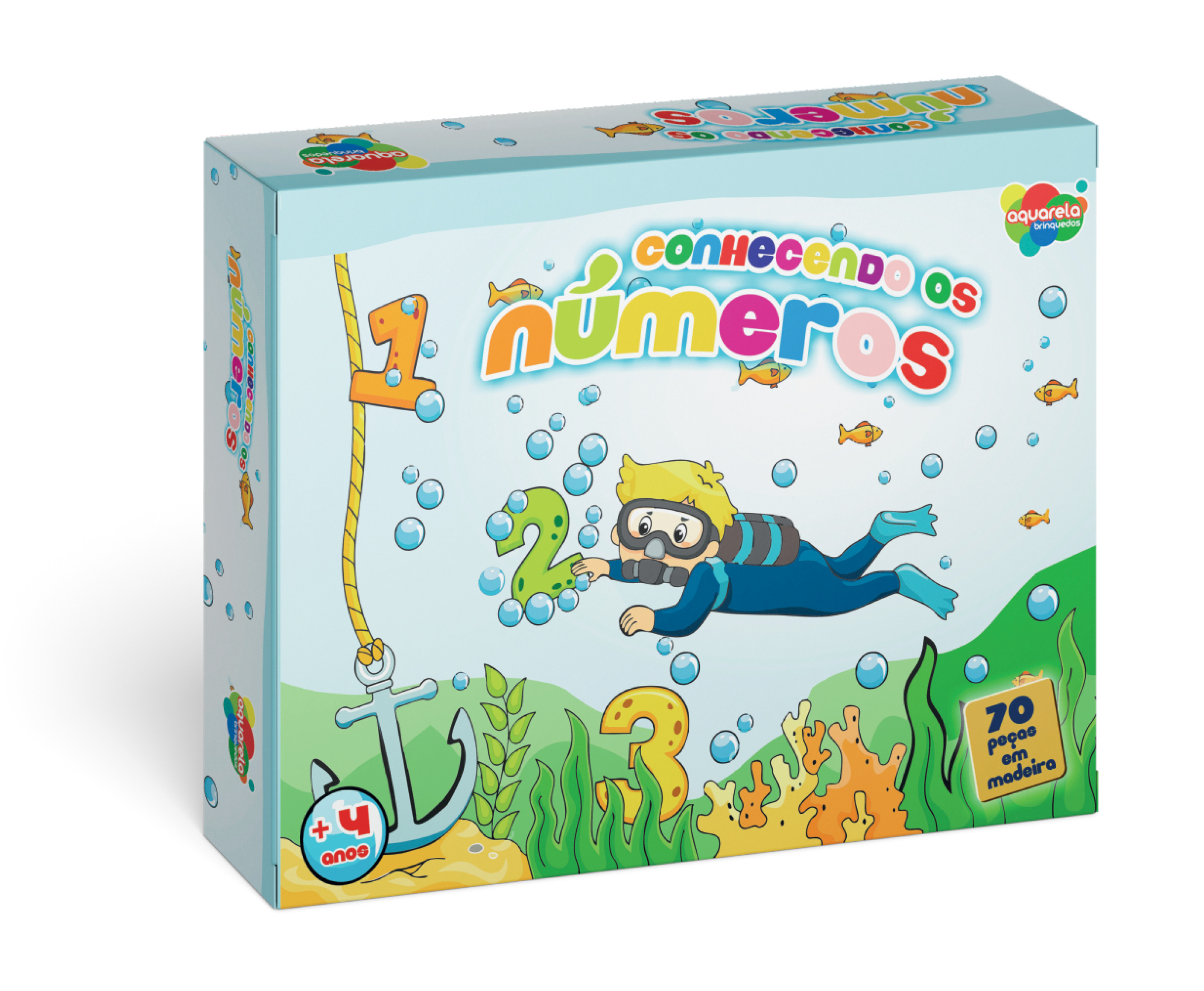 Com 70 peças feitas em madeira e serigrafadas com tinta atóxica, o Conhecendo os Números desenvolve a atenção e o aprendizado dos números e a formação das quatro operações matemáticas.