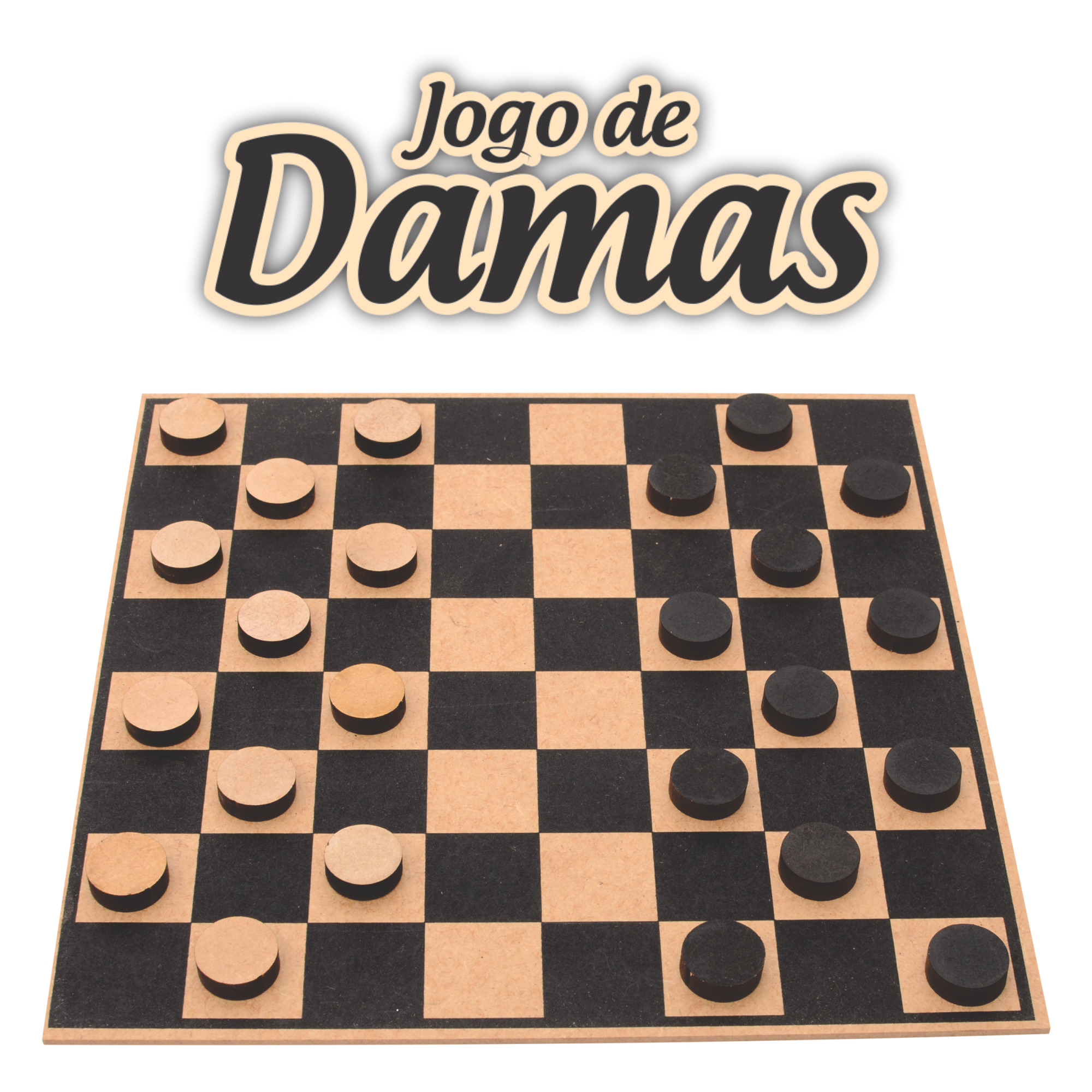 O Jogo de Damas é um clássico jogo de tabuleiro que promove o desenvolvimento estratégico, o raciocínio lógico e a resolução de problemas, com tabuleiro e peças em madeira.