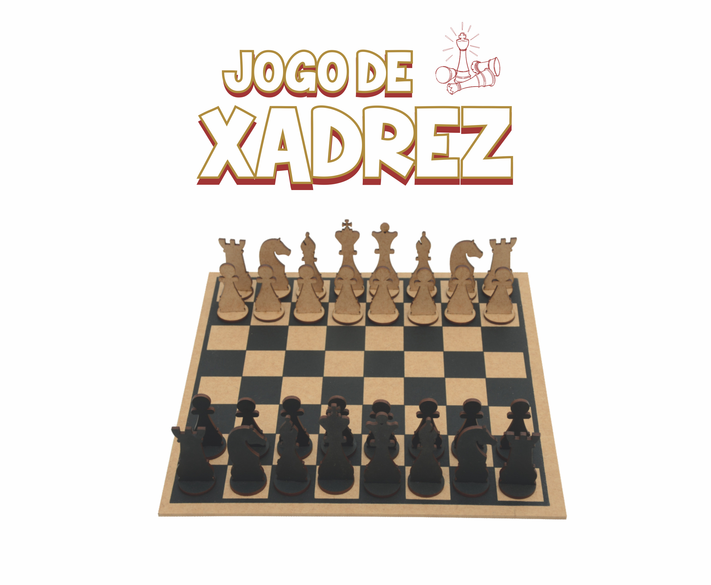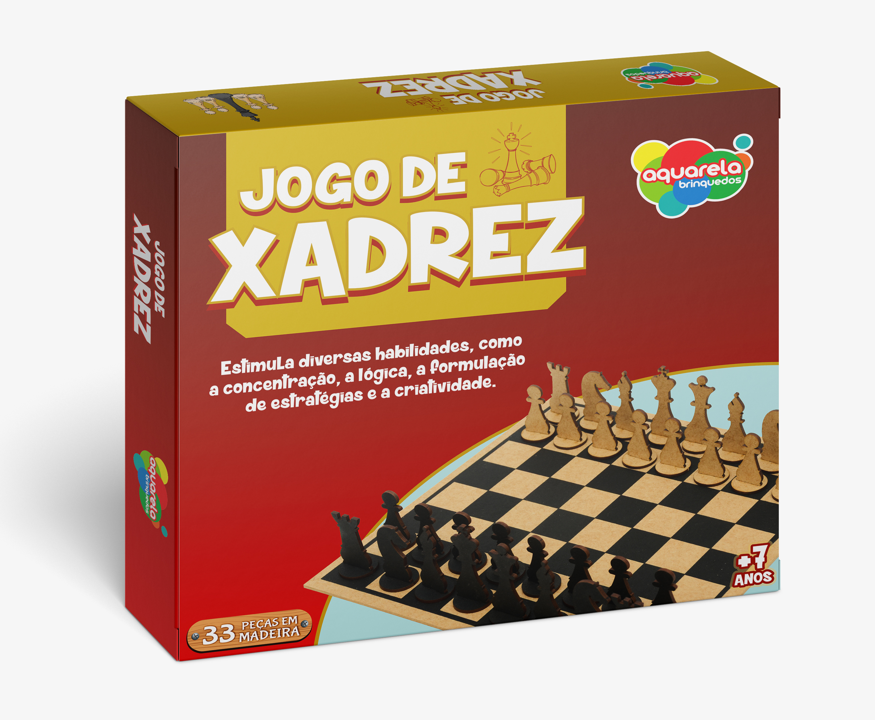 O Jogo de Xadrez, com peças em madeira, é um clássico que desenvolve estratégia, lógica e concentração. Feito com material durável, proporciona partidas envolventes e desafiadoras para todas as idades